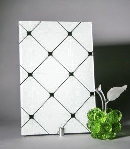 Декоративное стекло, сатинированное, его производят по технологии химического травления с одной или с двух сторон. Благодаря обработке образуется рельефный 3d узор. Недавно стало модным сочетать эту обработку с окрашиванием стекла. Применяют такое стекло в дизайне и декорировании мебели, стен и перегородок.